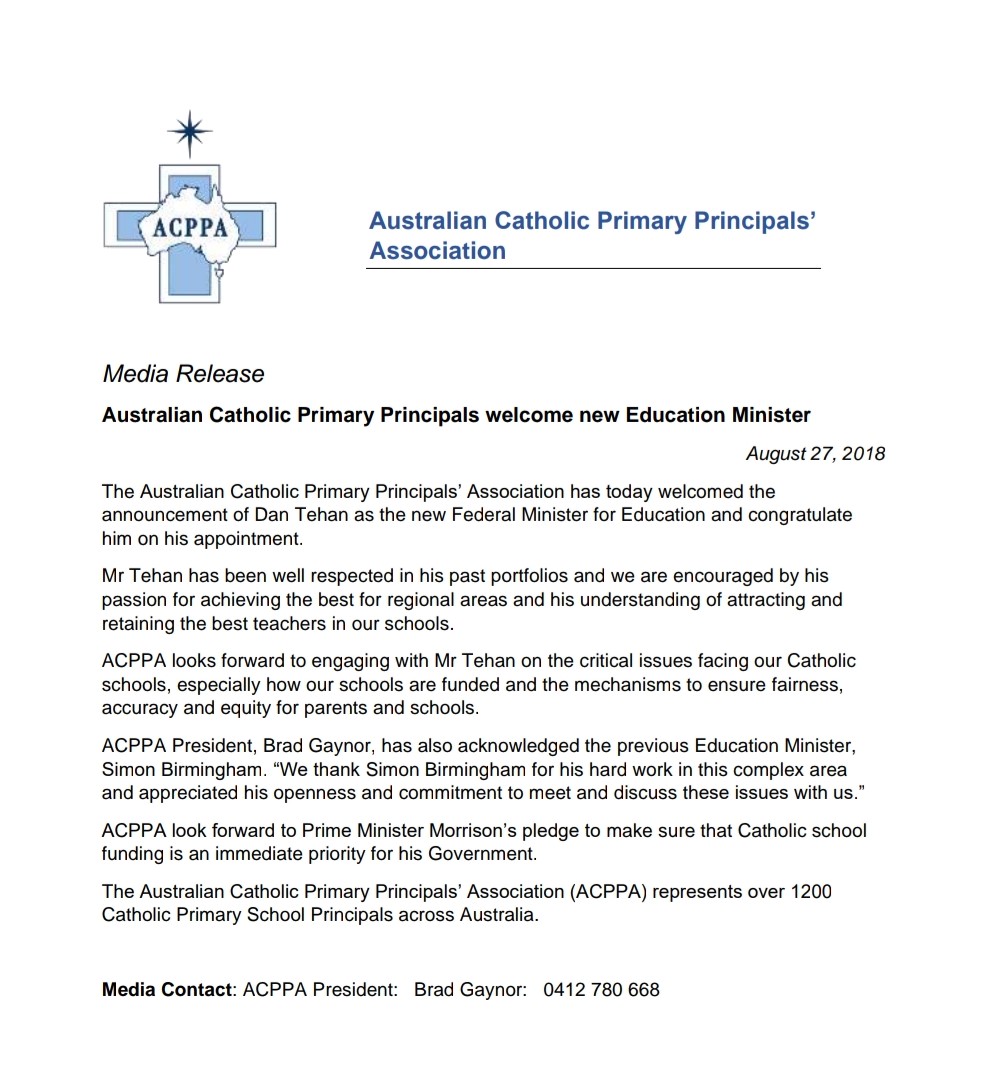 - Catholic Primary Principals meet with Ministers May 2018
