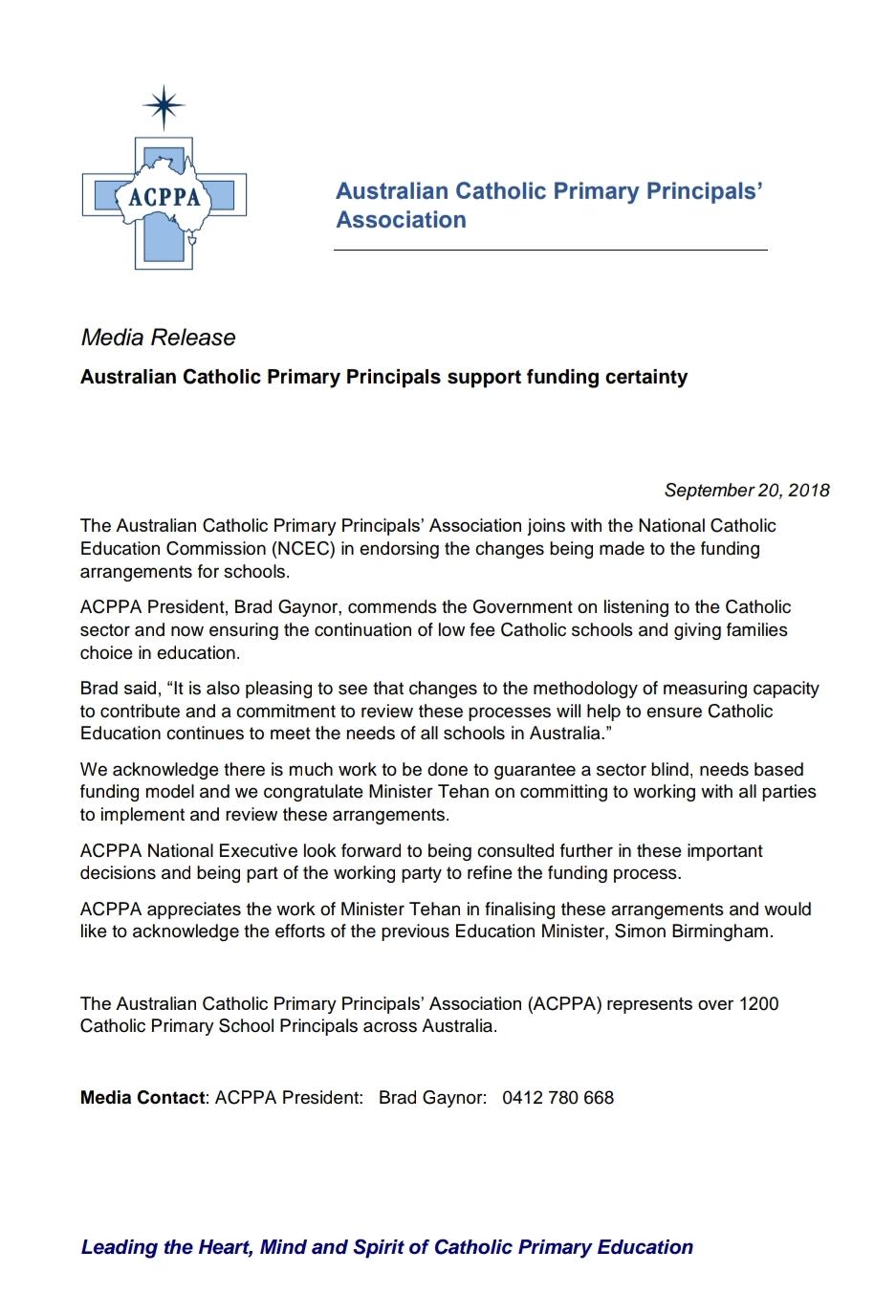 - ACPPA supports funding certainty Sept 2018